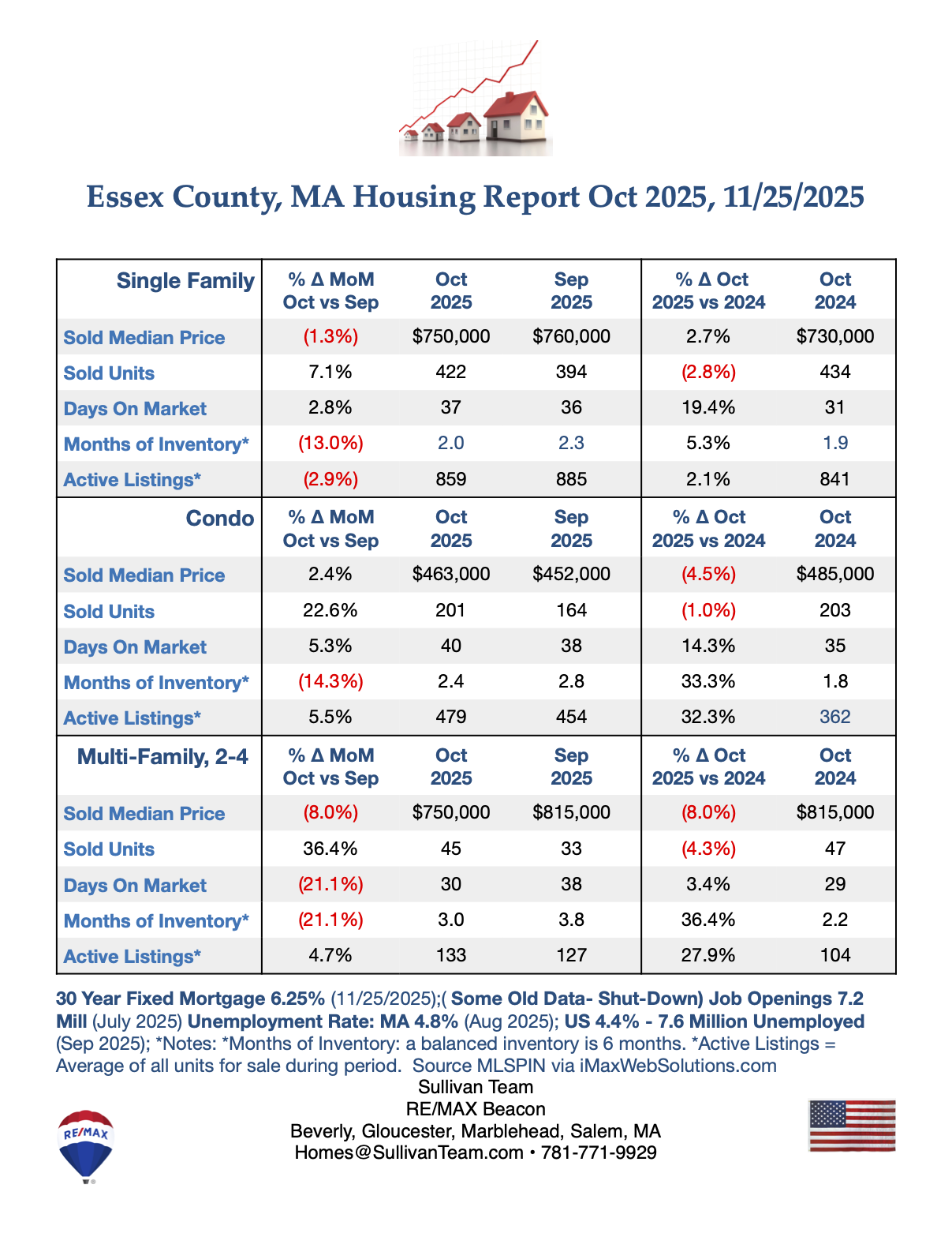 April Single-Family, Condo and 2-4 Unit Multi-Family Unit Sales and Active Listings rose from March, 2025. However Median Prices only rose for Single-Family but fell for Condo and 2-4 Unit Multi-Family.